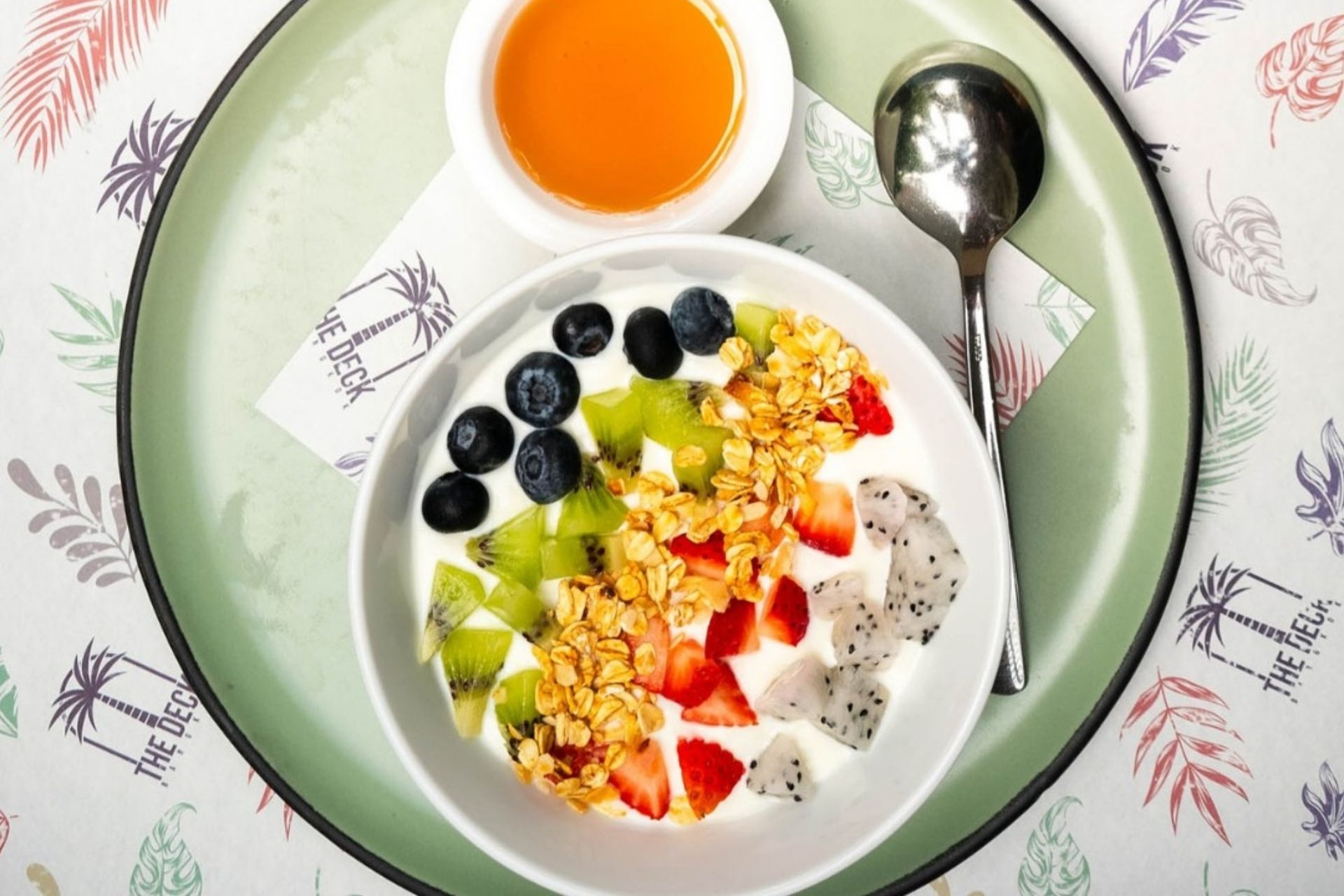 - For the Health-Conscious: Yoghurt & granola bowl, a vibrant blend of seasonal fruits, served with honey and finished with our crunchy, house-made granola.